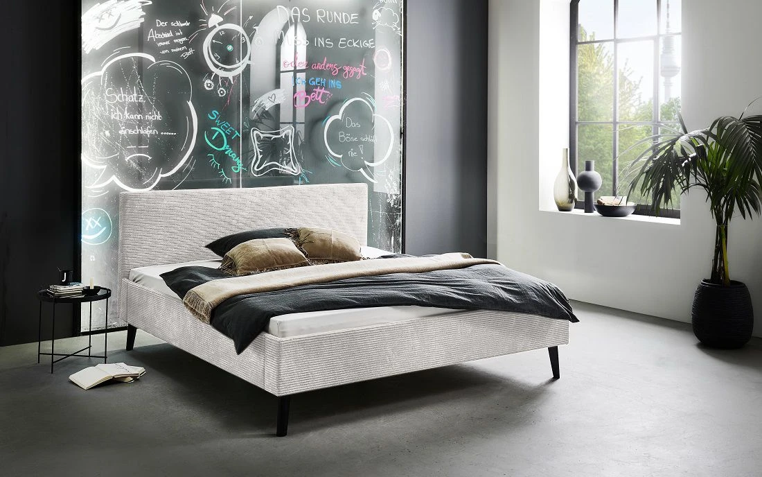 - Modernes und formschönes Polsterbett mit glattem Kopfteil