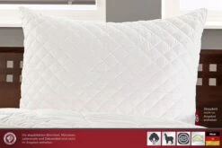 - Kopfkissen mit Bio-Baumwoll-Satin-Bezug versteppt mit Bio-Baumwoll-Vlies und einem Innenkissen aus Baumwollperkal versteppt mit Schurwollvlies