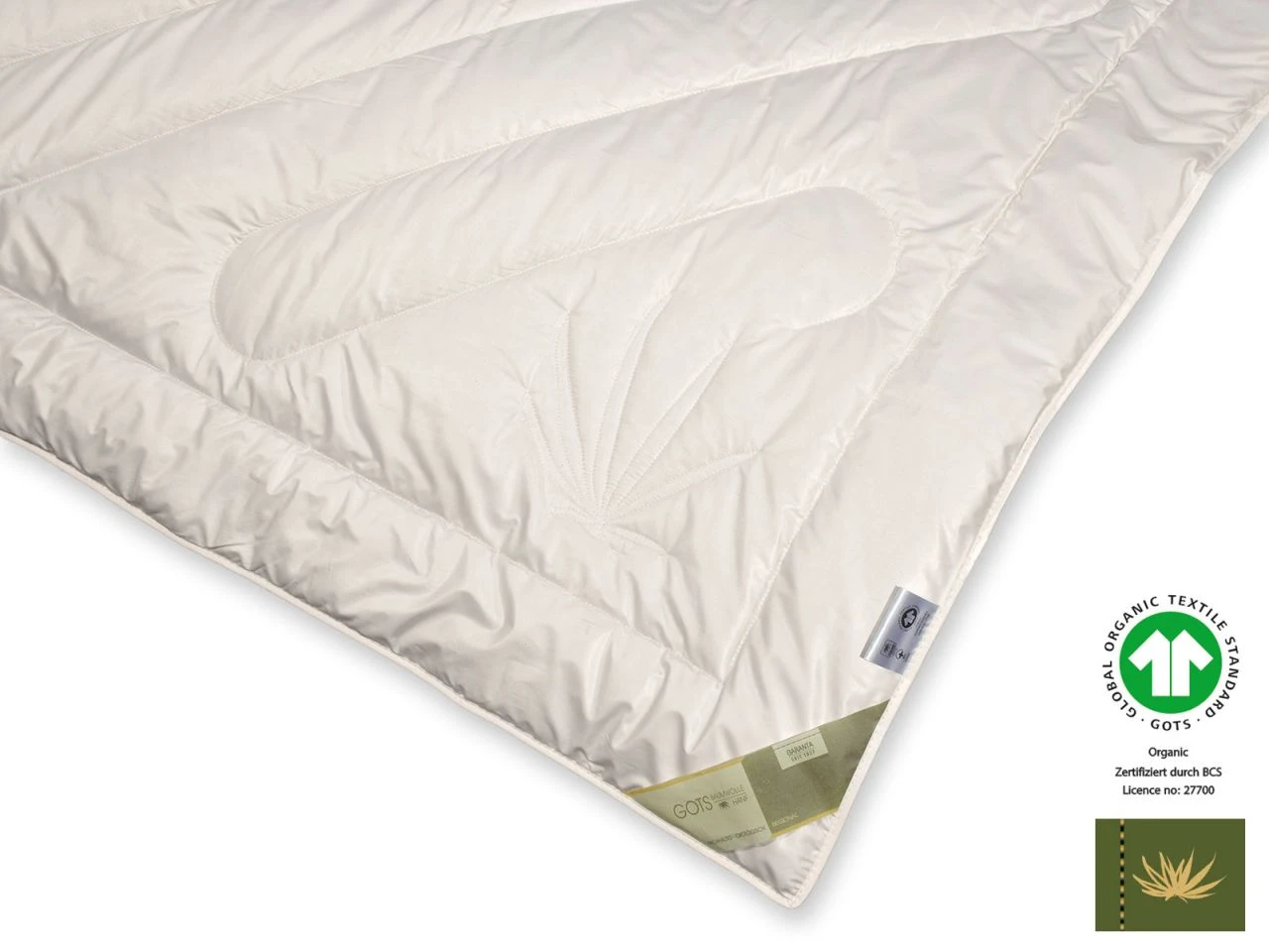 - Angenehmes Leichtsteppbett mit Bio-Baumwoll-Satin-Bezug und einer Füllung aus Bio-Hanf (60% Hanf, 40% Baumwolle)