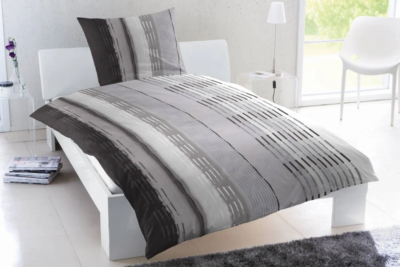 - Bettwäsche Garnitur mit Streifen-Dessin in kühlen Grautönen