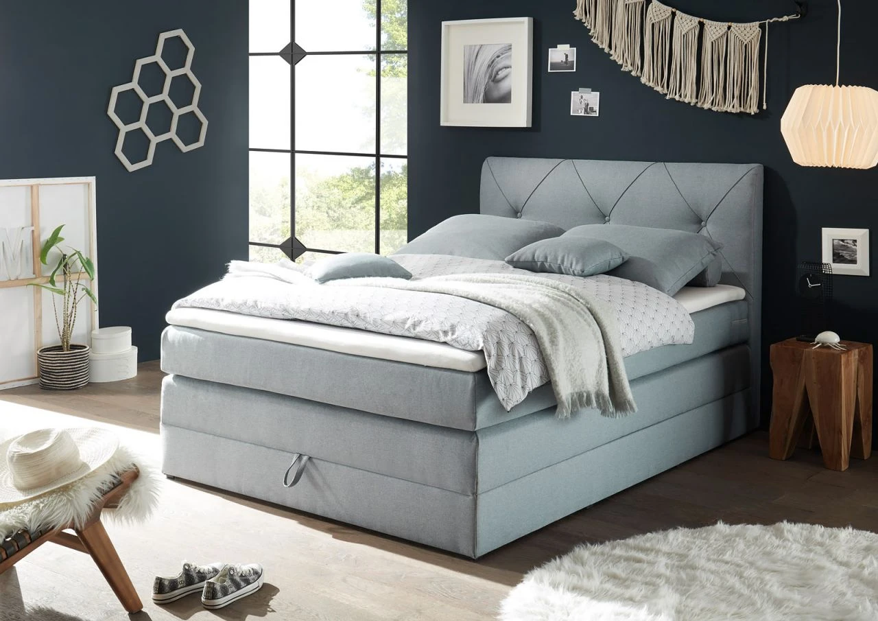 - Modernes Boxspringbett mit Stoffbezug Como und 7-Zonen-Tonnentaschenfederkern-Obermatratze Härtegrad 2 (Liegeempfinden mittel) mit guter Körperanpassungsfähigkeit und hervorragender Punktelastizität