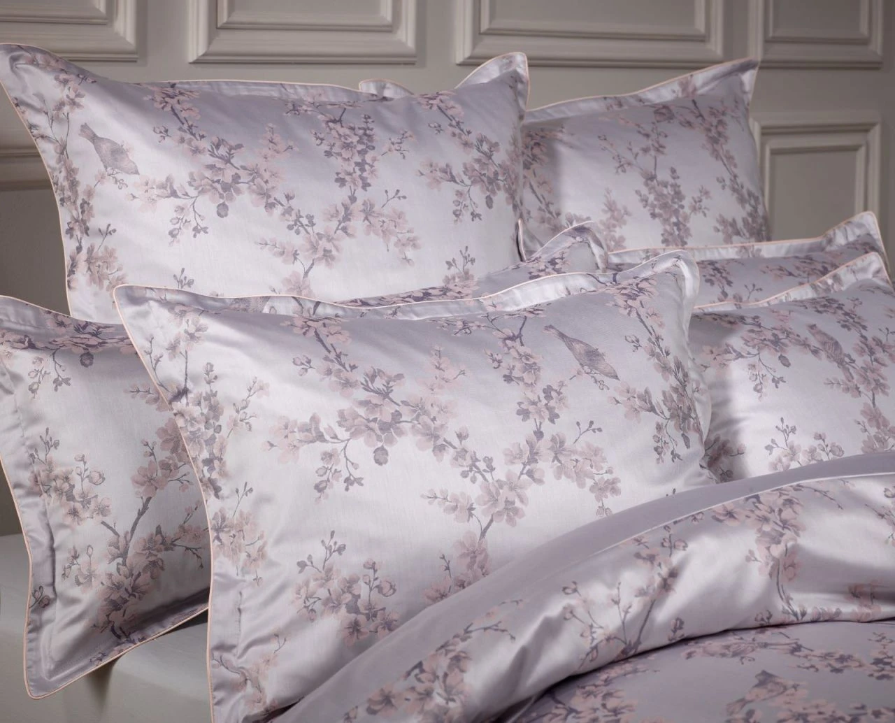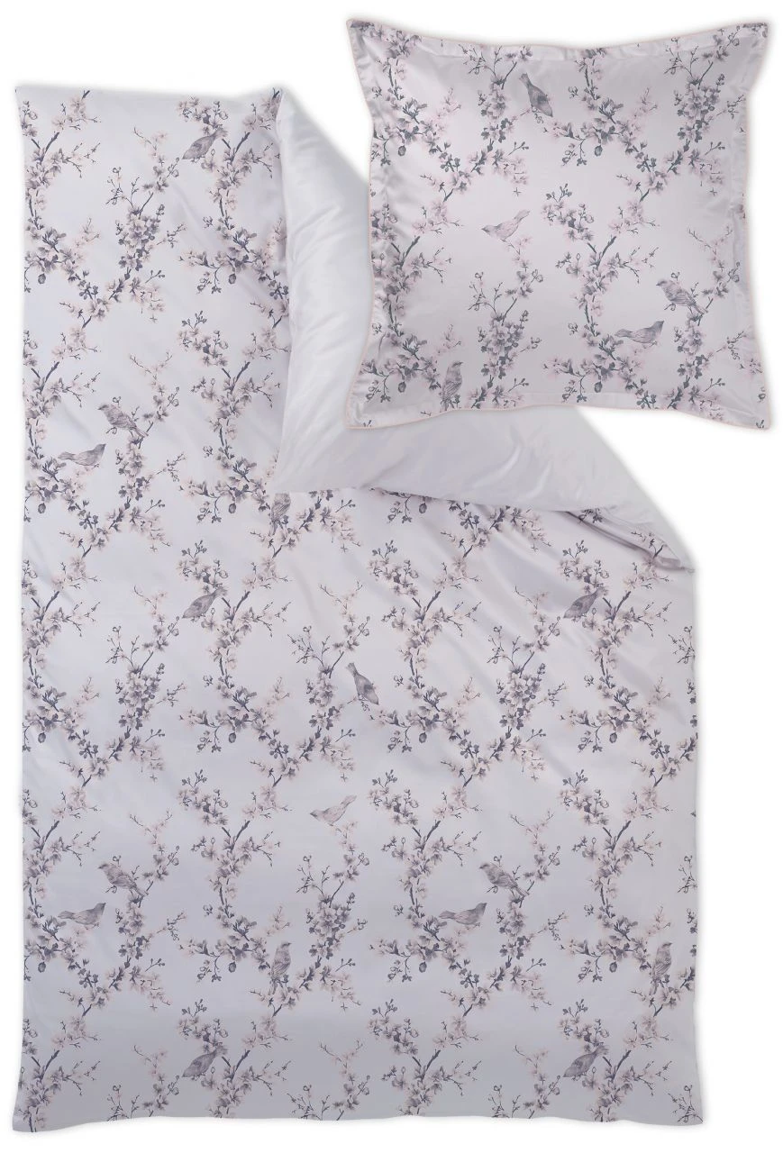 - Eine Hommage an die Schönheit japanischer Kirschblütenhaine: Mako-Brokat-Damast Wendebettwäsche mit romantischen Kirschblütenzweigen und Sperlingen