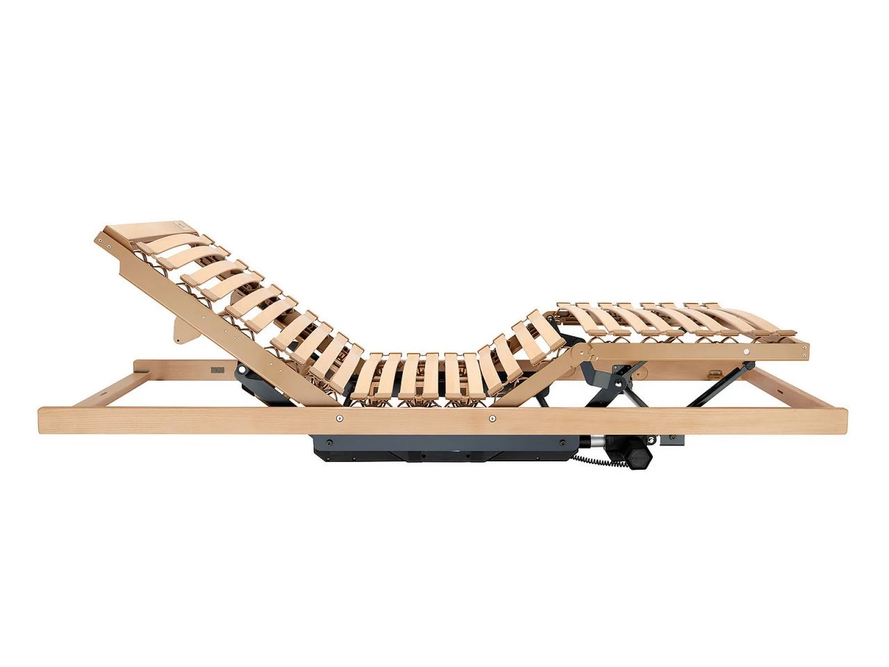- Netzbetriebener, langlebiger Komfortrahmen mit separat motorisch verstellbarem Rücken-, Oberschenkel- und Unterschenkelbereich