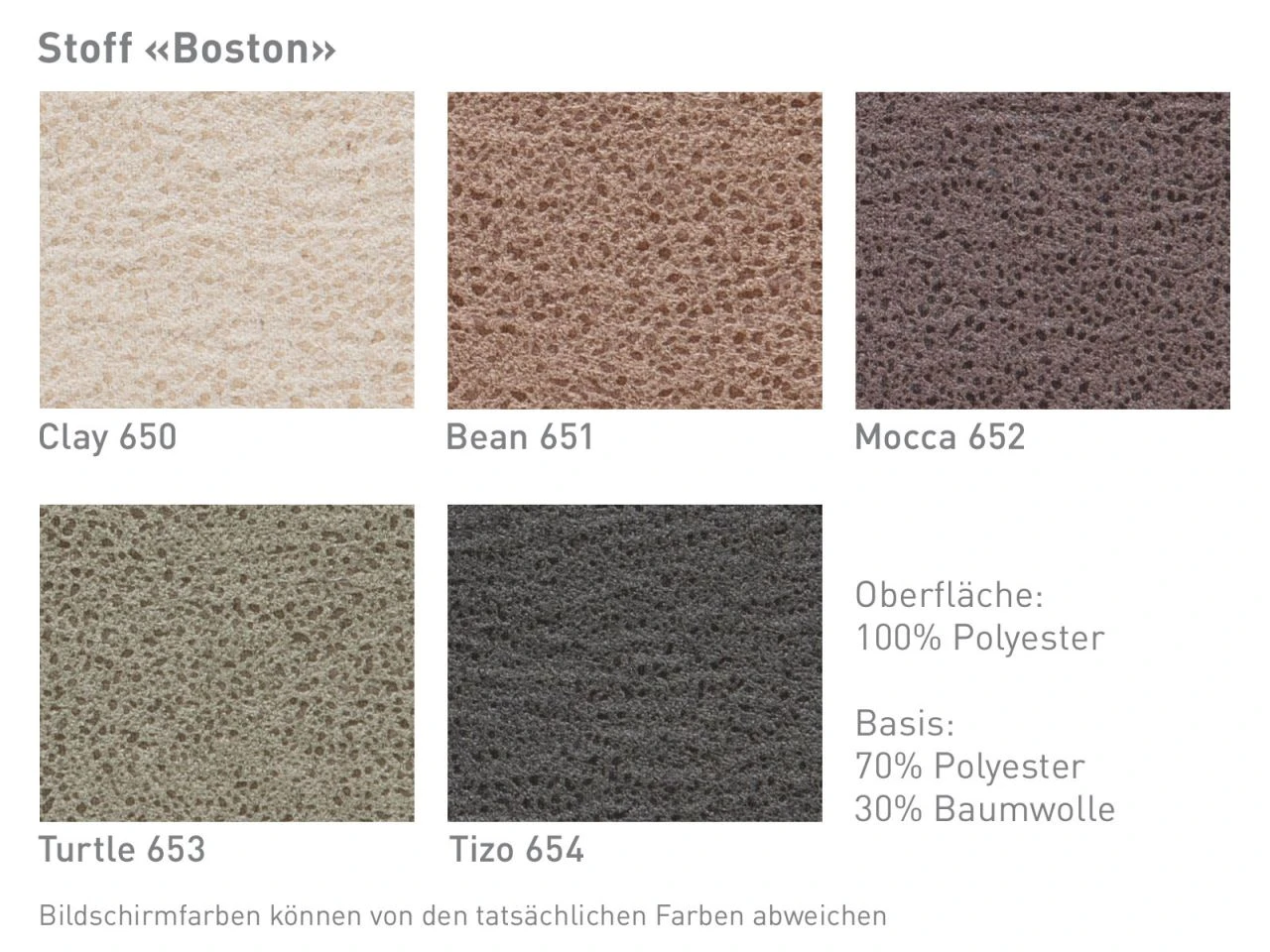 - Stoff Boston, Oberfläche 100% Polyester, Basis 70% Polyester, 30% Baumwolle