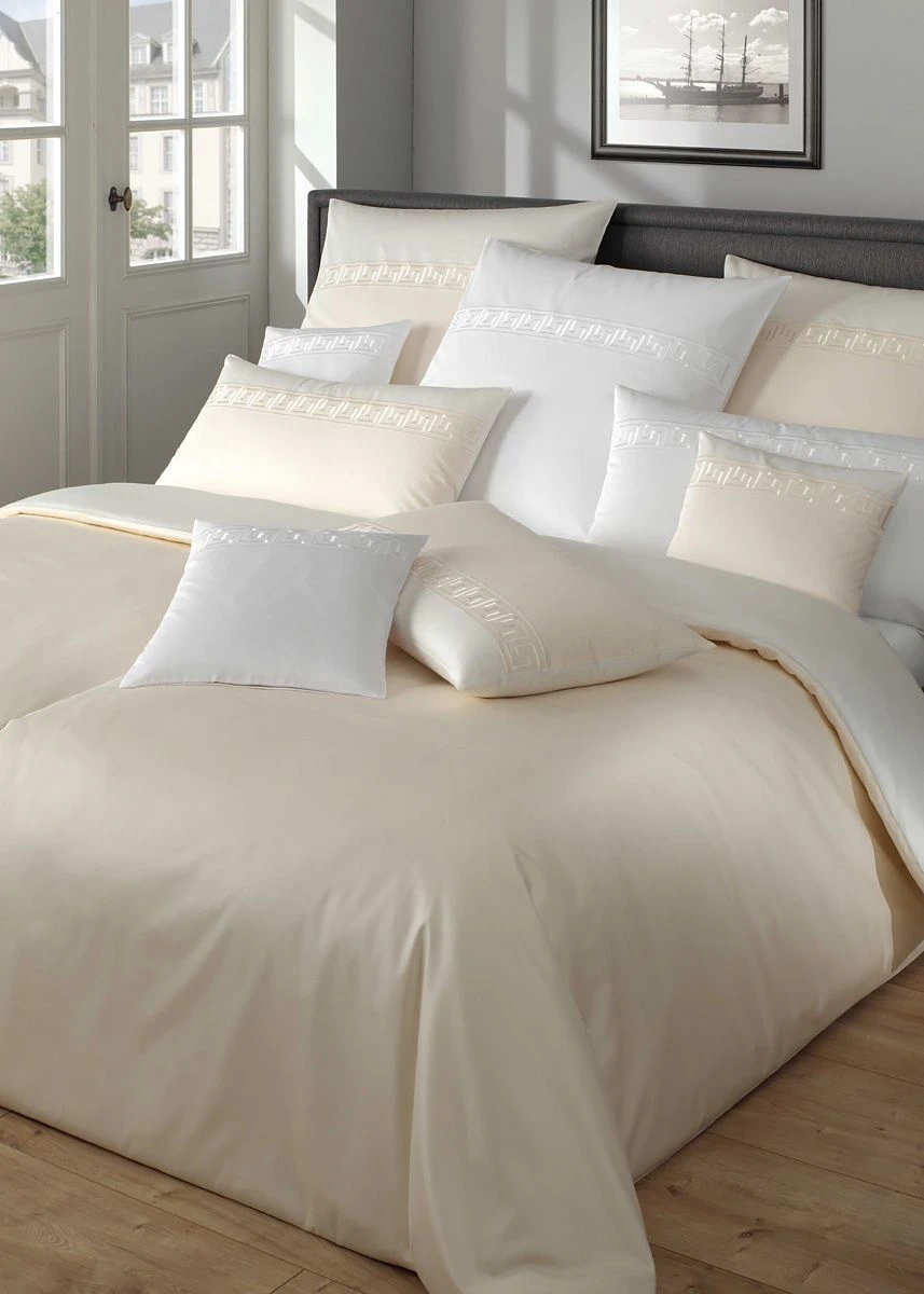 - Die griechisch anmutende und zeitlose Mako–Satin Bettwäsche El Greco 1976 aus der aktuellen Classic-Linie wirkt durch Eleganz
