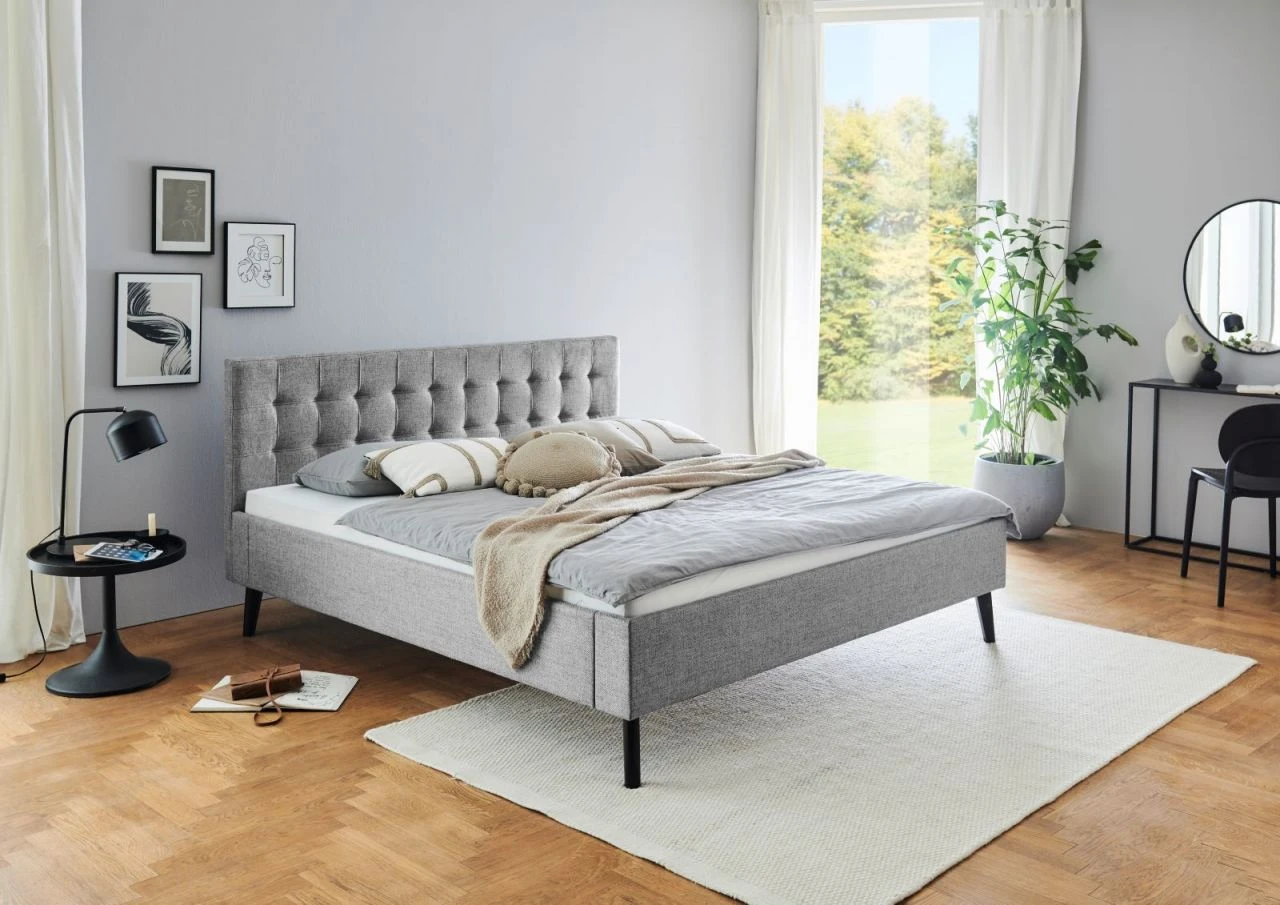 - Modernes und formschönes Polsterbett mit gestepptem Kopfteil