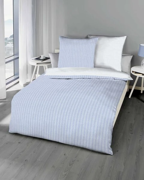 - Sehr pflegeleichte Perkal Wendebettwäsche mit klassischem Längsstreifen-Dessin in sommerlichen Farbstellungen
