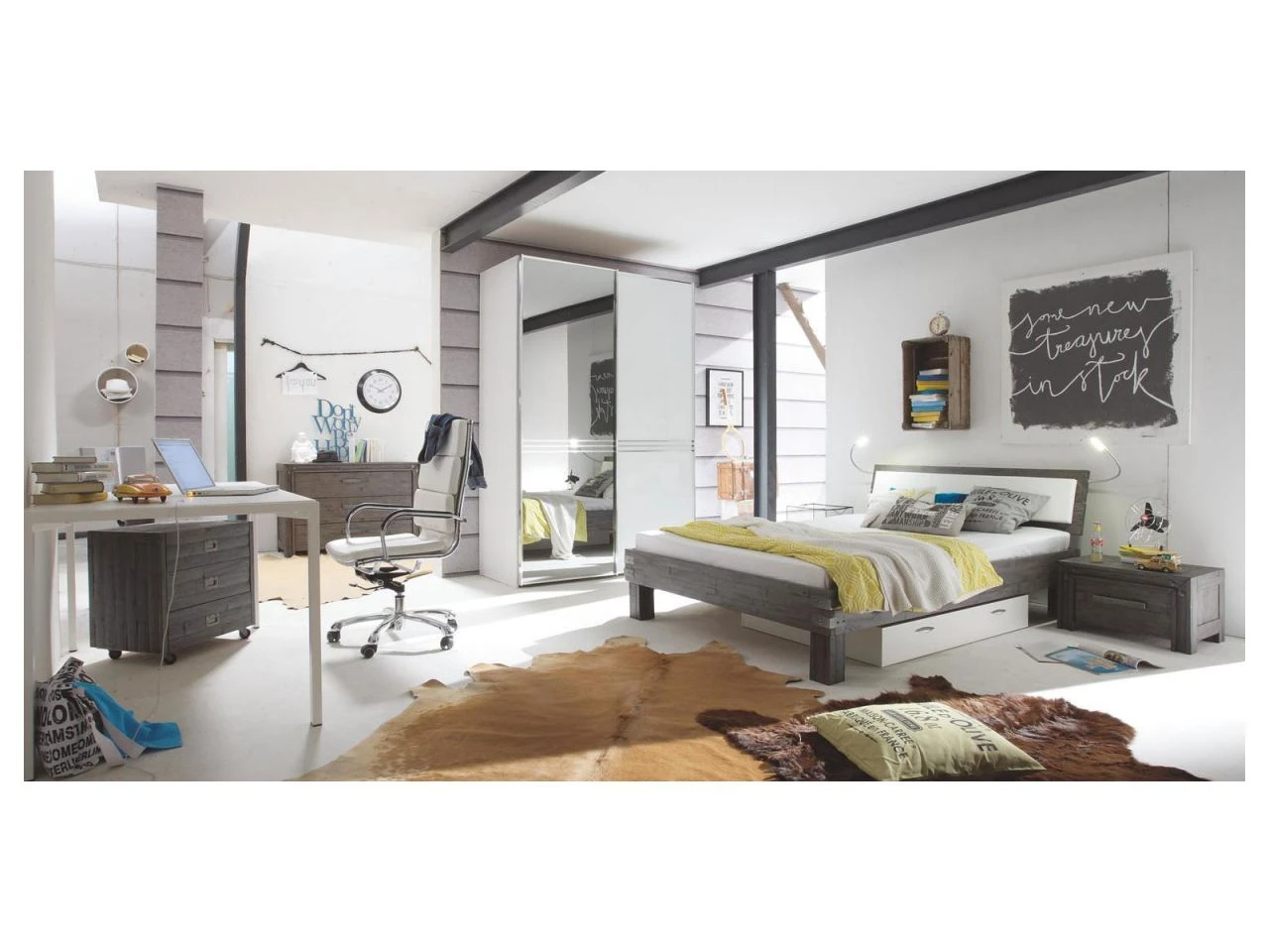 - Perfekter Loft-Style: Kombination Rahmen Loft 18 mit Metallwinkel Case 8 used, Kopfteil Acada mit Kissen Arona, Füße Ivio, Box