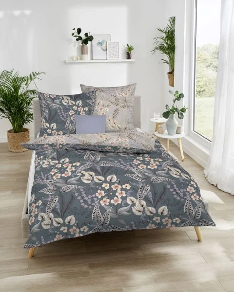 - Mako–Satin Wendebettwäsche mit großflächigem, floralem Dessin in dezenten Farben