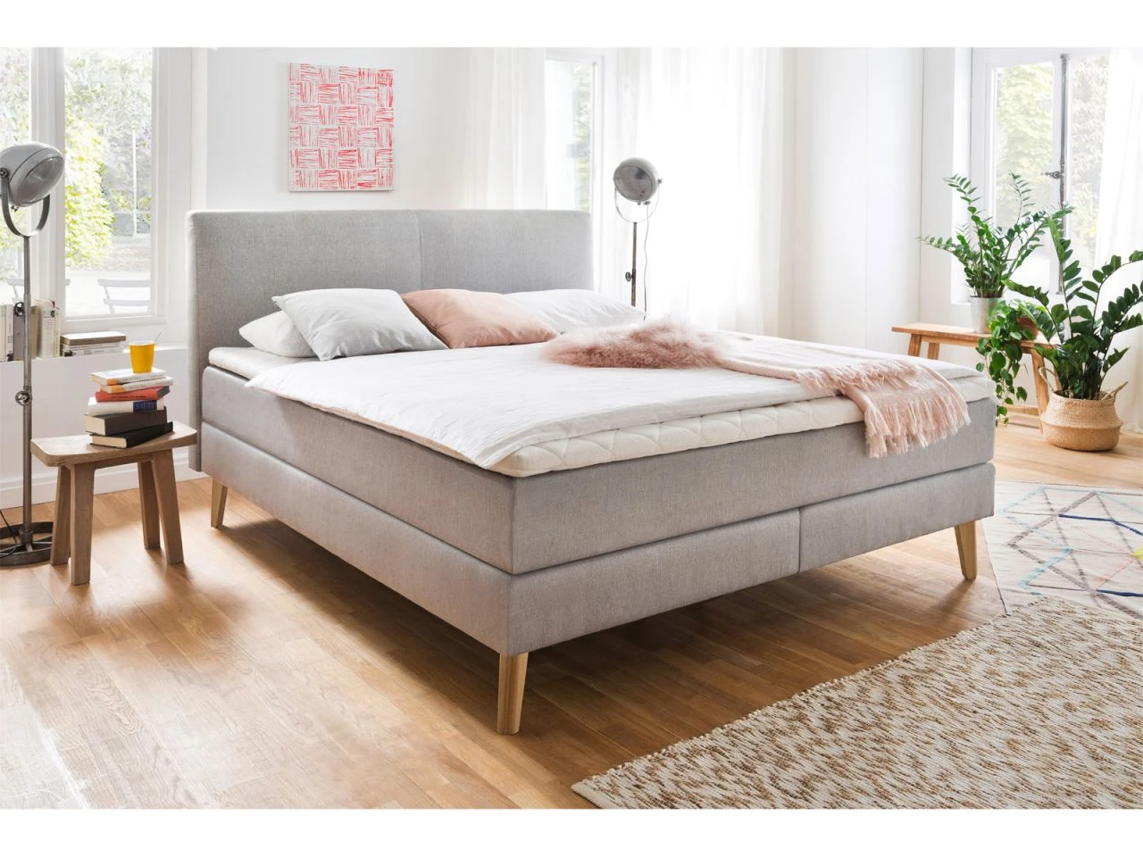- Traumhaft schlicht und leicht: Modernes Boxspringbett Greta mit glattem Kopfteil mit Mittelnaht