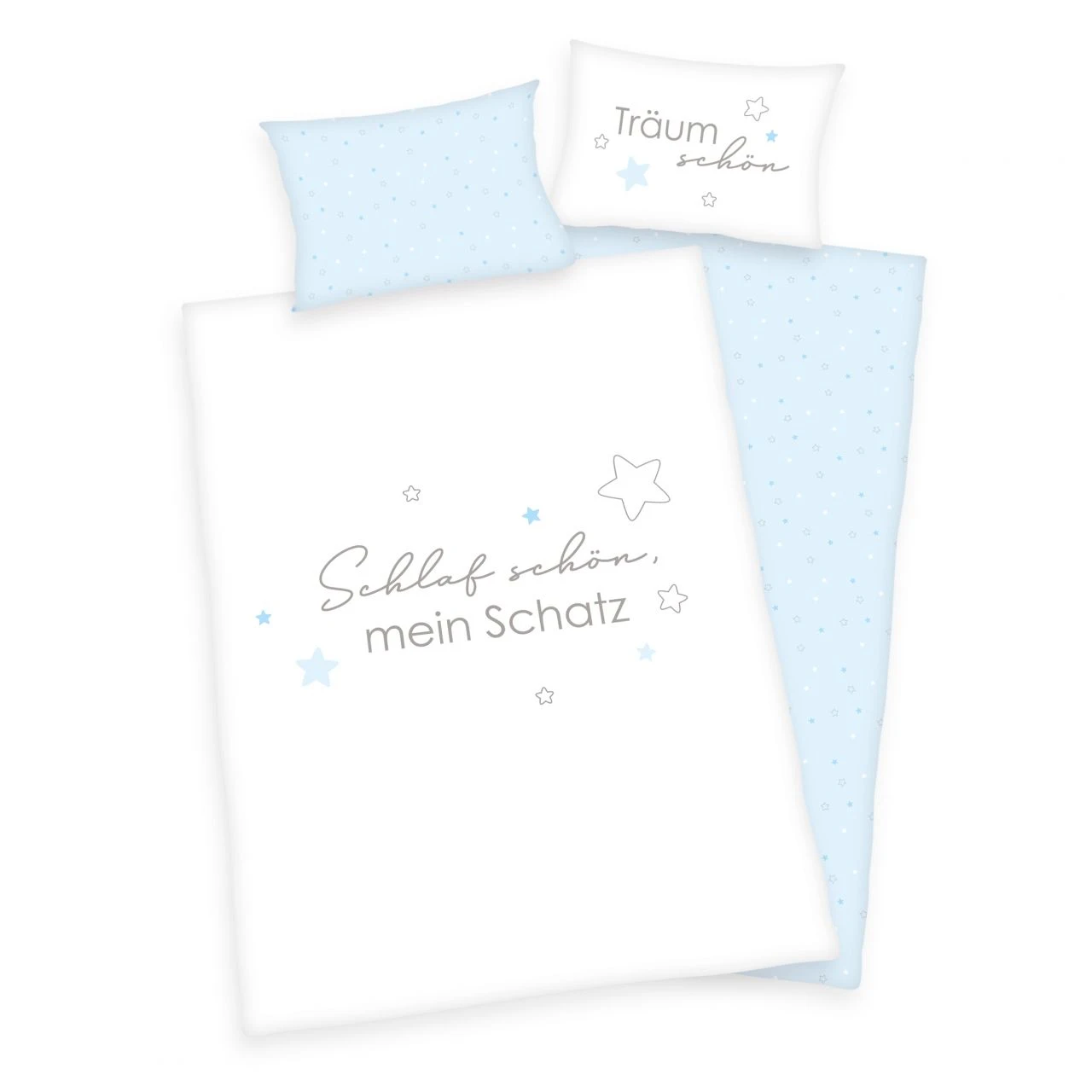 - Süße Flanell Kinder-Wendebettwäsche mit Schriftzug und Sternchen auf Decken- und Kissenbezug