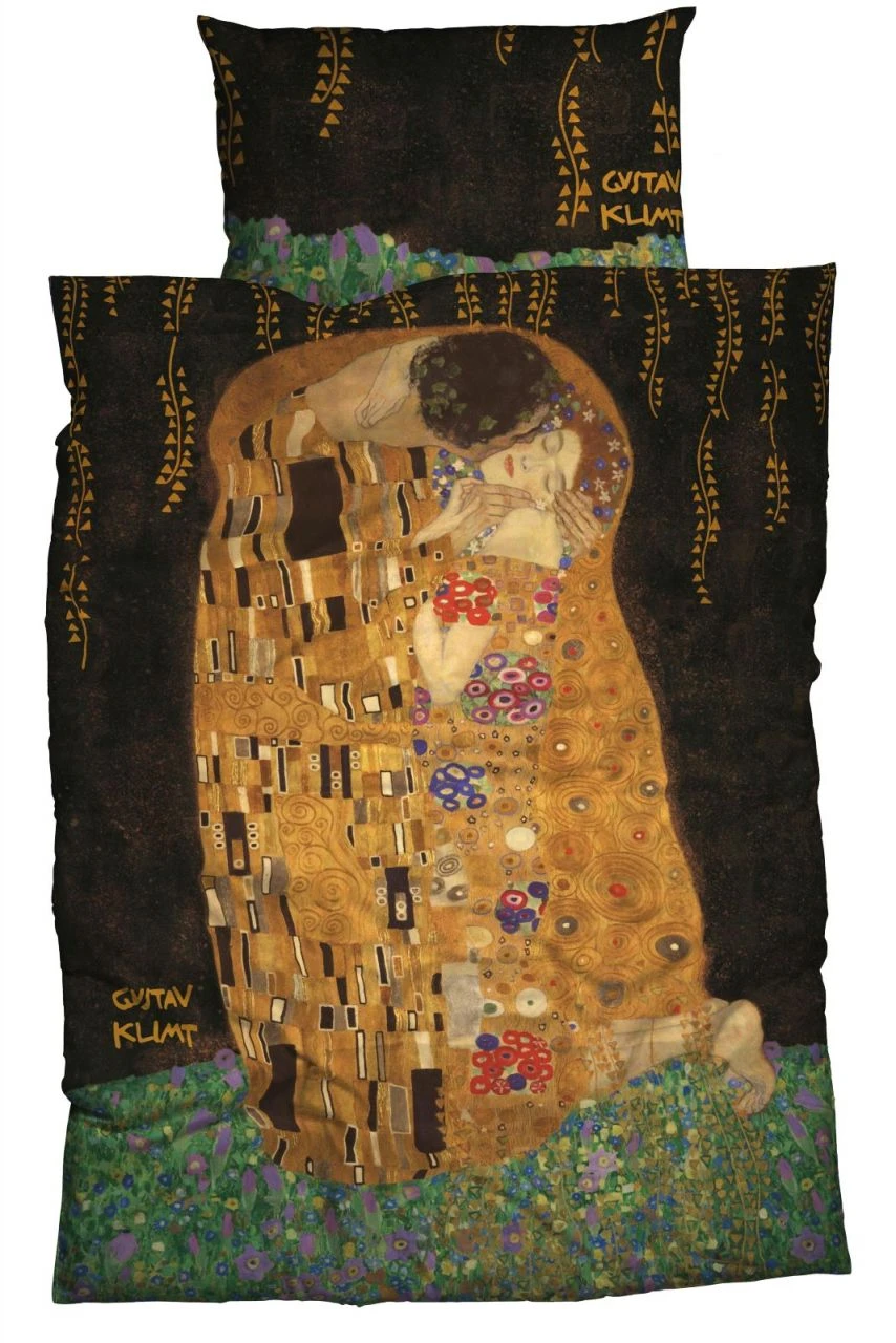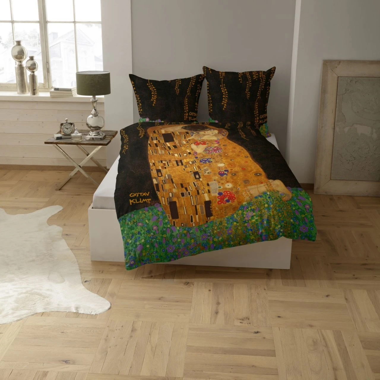 - Wunderschöne Baumwoll-Satin Bettwäsche mit dem berühmten Motiv „Der Kuss“ von Gustav Klimt