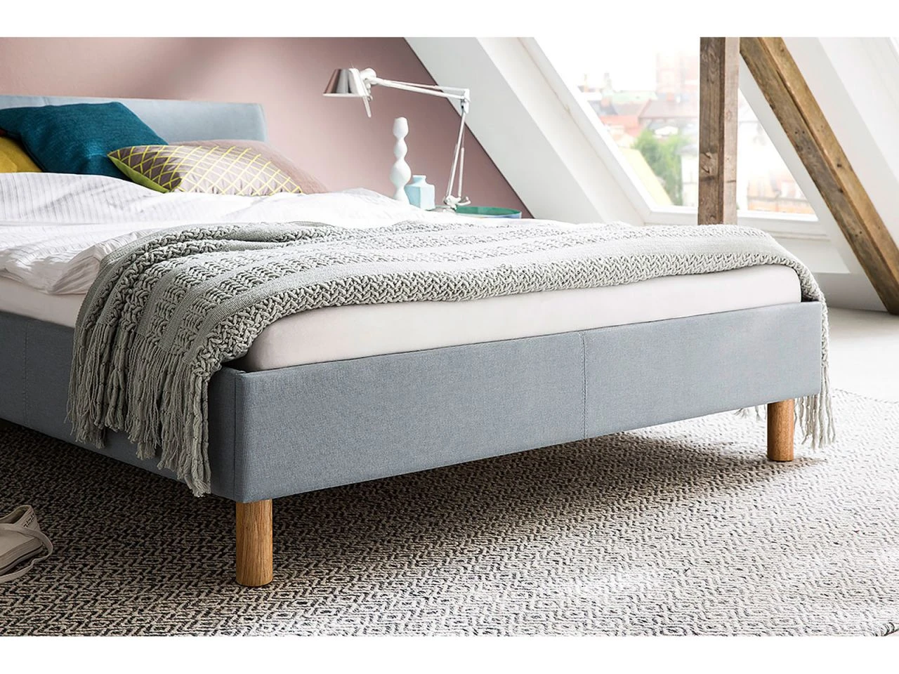Rahmen, Kopfteil, Füße – ohne Lattenrost, Matratze, Topper, Beimöbel, Bettwaren und Deko