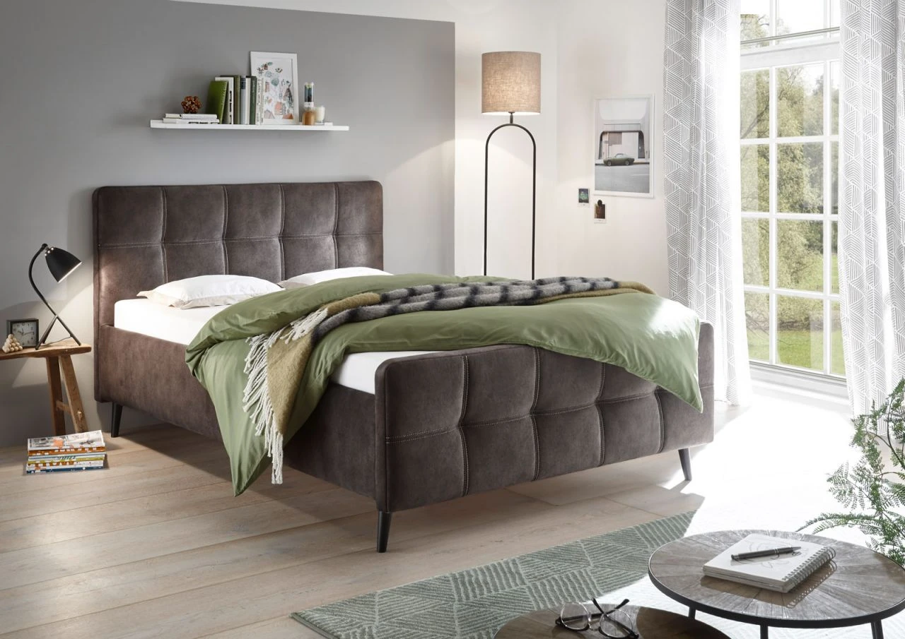 - Elegantes Polsterbett mit Füßen aus Massivholz