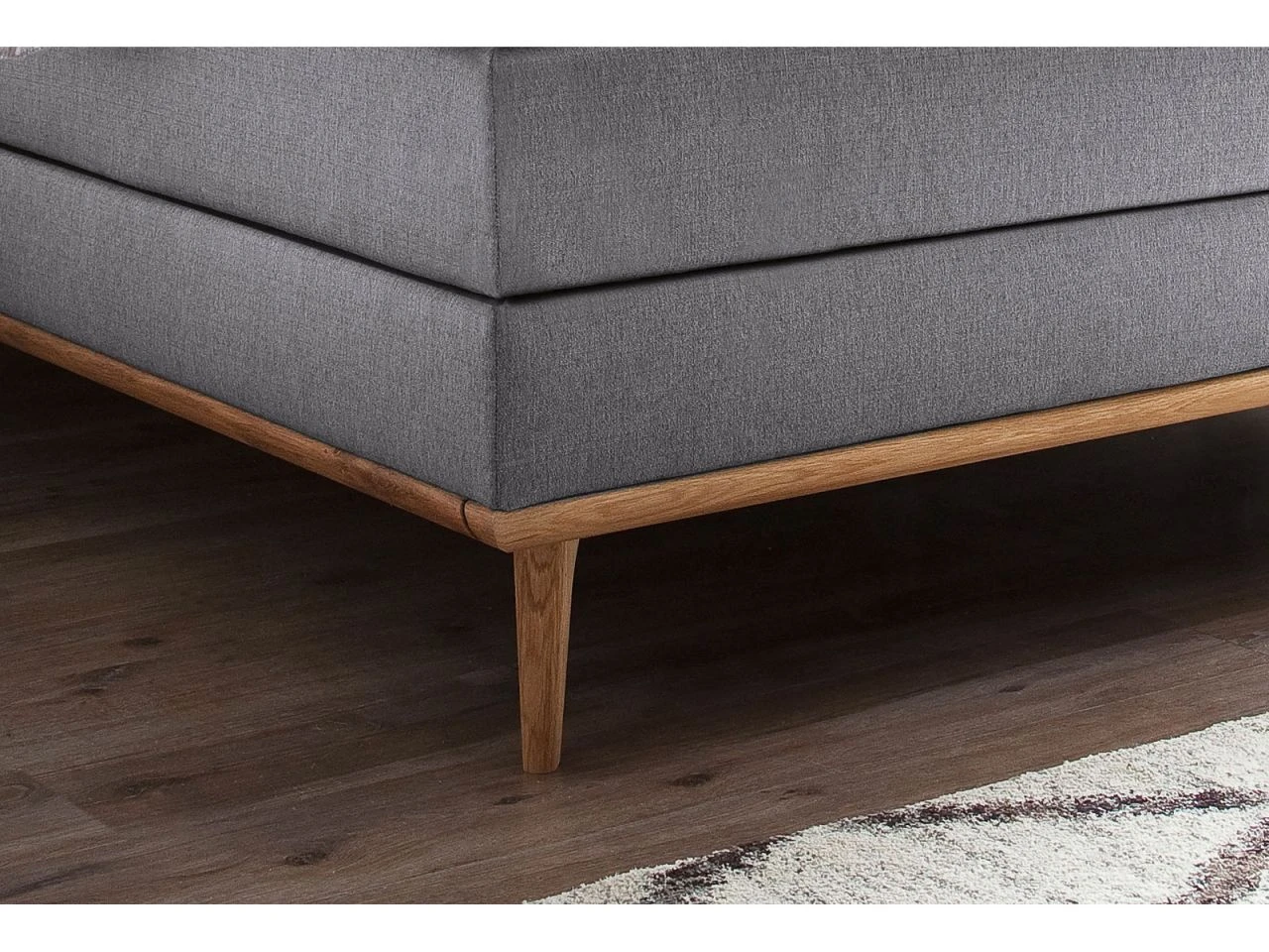 - Harmonische Kombination von Holzelementen, robustem, hochwertigem Stoff Porto und schnörkelloser Form