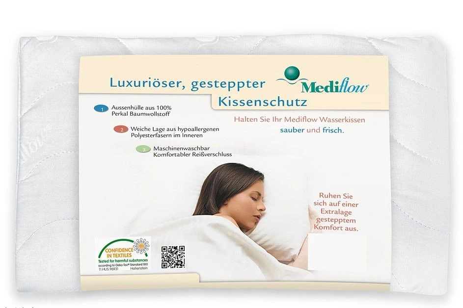 - Aussenhülle aus 100% Perkal Baumwollstoff versteppt mit hypoallergenen Polyesterfaser-Vlies auf der Unterseite