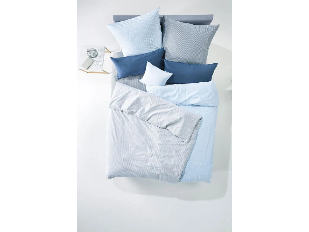 - Moderne Bettwäsche aus feinem Buntgewebe in maritimen, leichtem Design