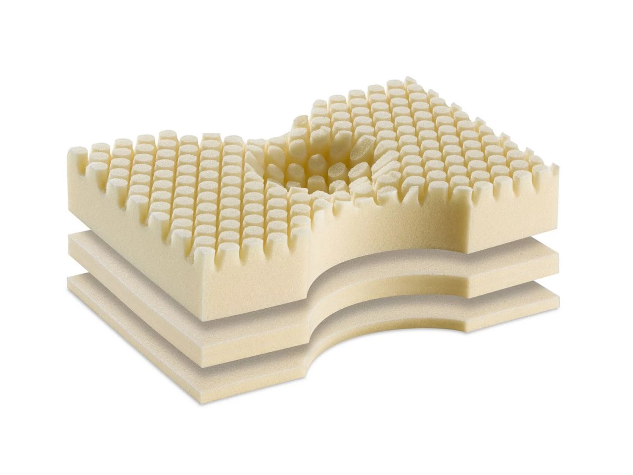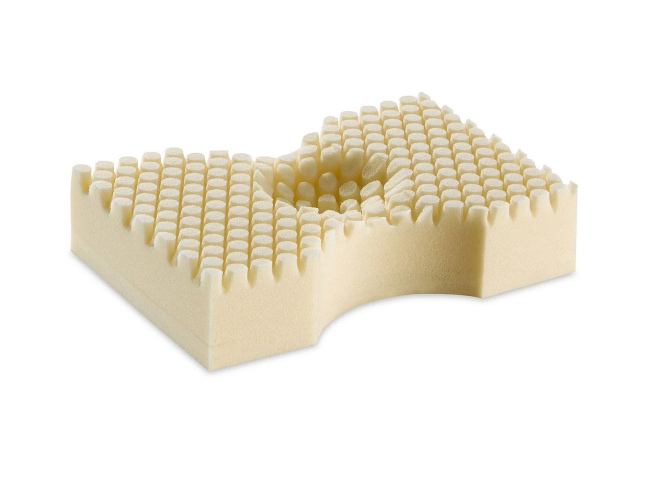 Für Seiten- und Rückenschläfer: Kissen mit innovativer Formgebung aus besonderen Materialien für eine gleichmäßige Druckverteilung der sensiblen Kopf-, Nacken- und Schulterpartie.