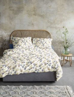 - Mako–Satin Bettwäsche mit floralem Dessin in pastelligen Farben auf weißem Grund