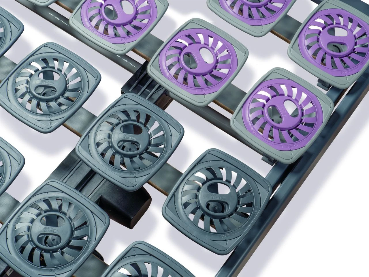 Die einzelnen Tellerelemente sind zur Unterstützung der Druckentlastung in 6 Zonen eingeteilt: