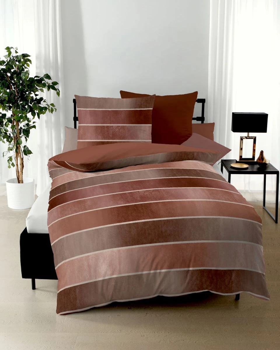 - Moderne Feinbiber Bettwäsche mit einem Dessin aus Blockstreifen in tollen Farbverläufen