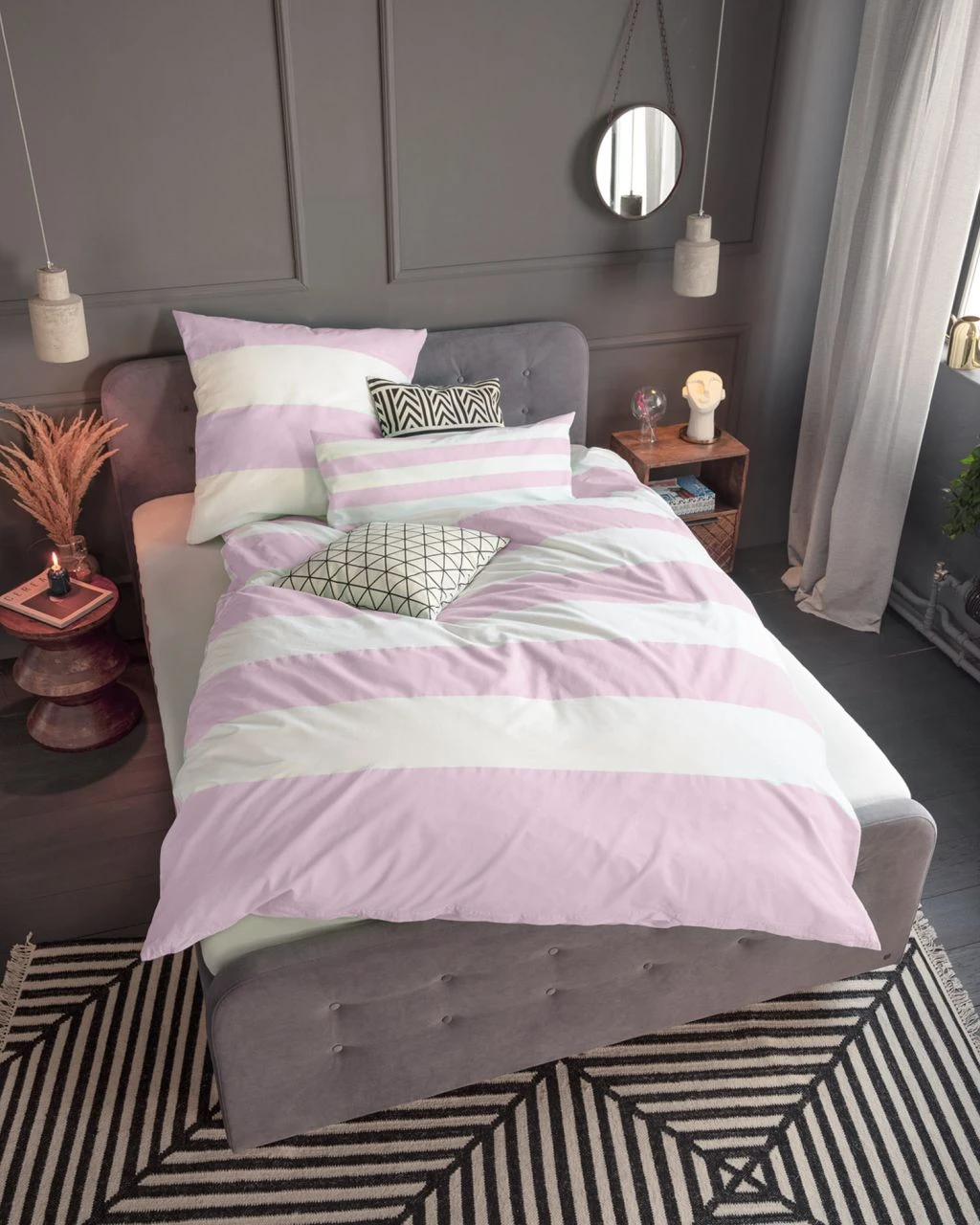 - Klassische Lässigkeit: Linon Wendebettwäsche Casual Stripe 49769 mit unterschiedlich gestreifeten Seiten