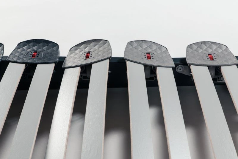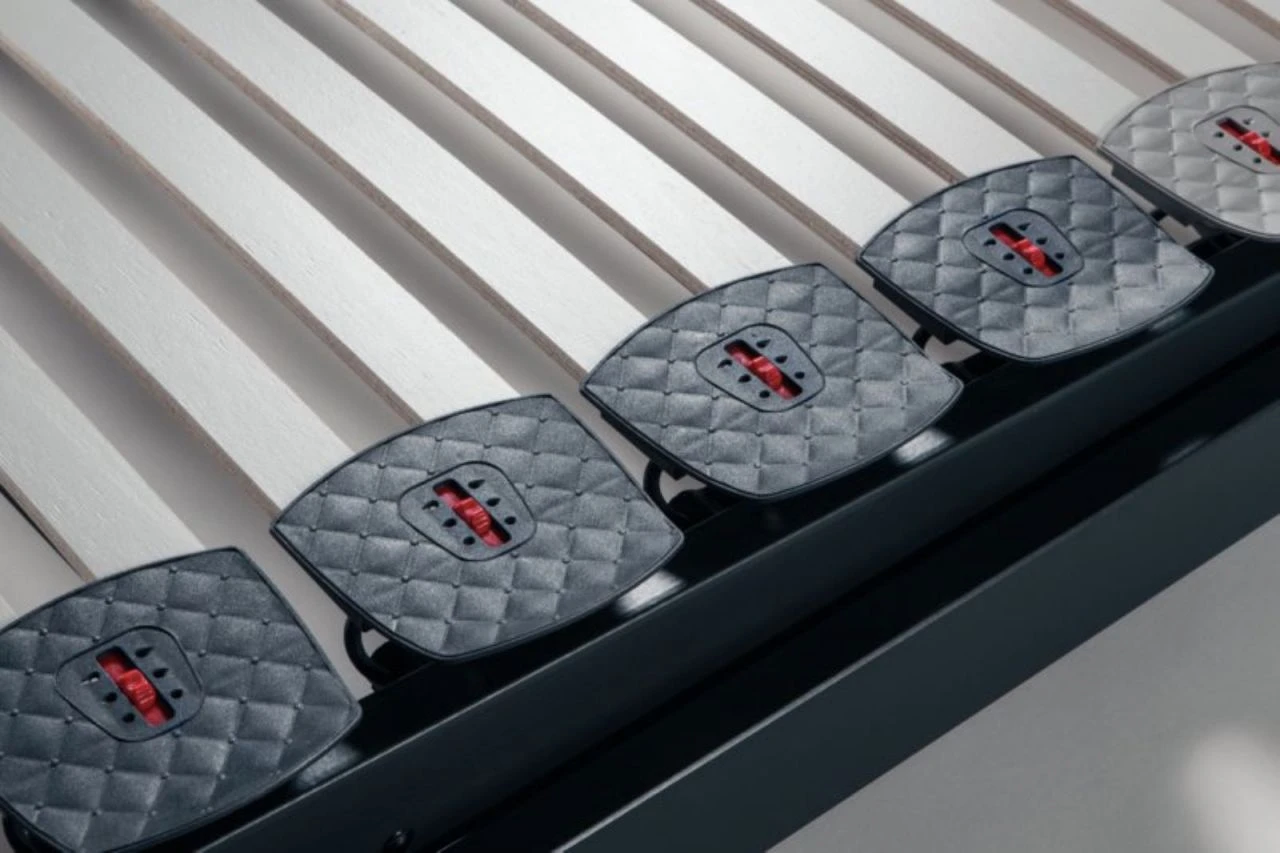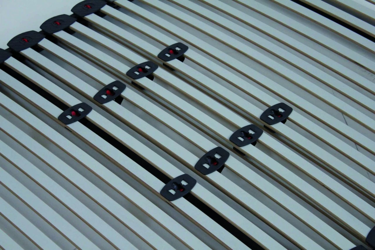 Diese ist aus TPE-E Kunststoff und überzeugt durch ihre hervorragende Flexibilität und kann zu 100% geräuschlos komprimiert werden - Bei 7 Lattenpaaren im Schulter- und Gesäßzonen-Bereich Festigkeit verstellbar: soft-mittel-fest