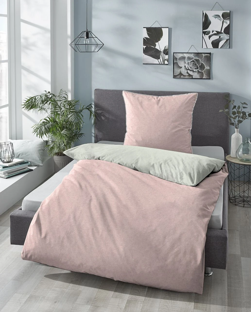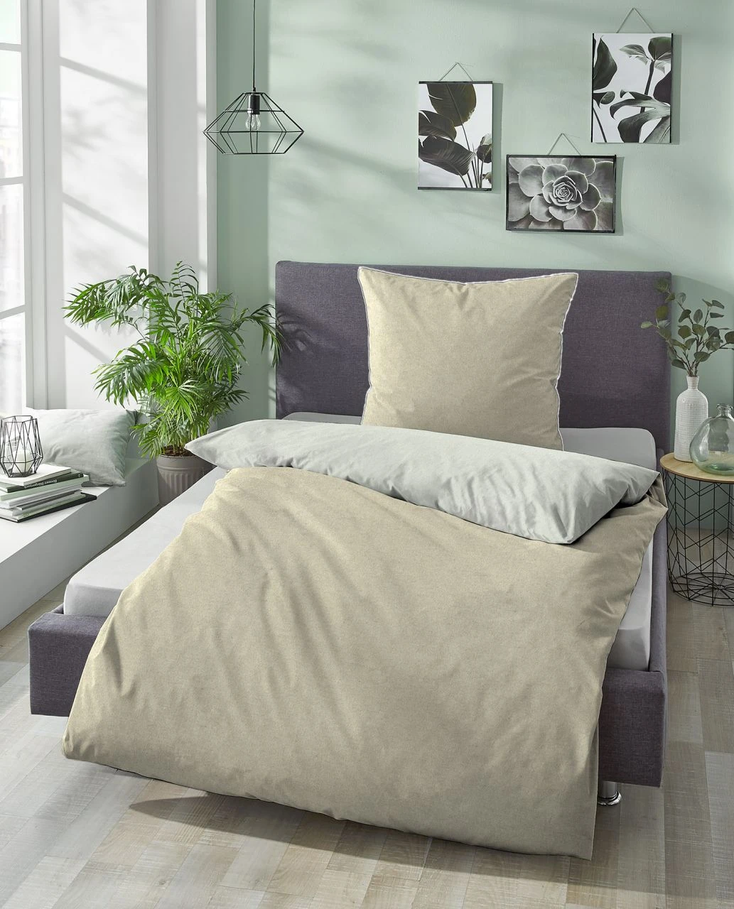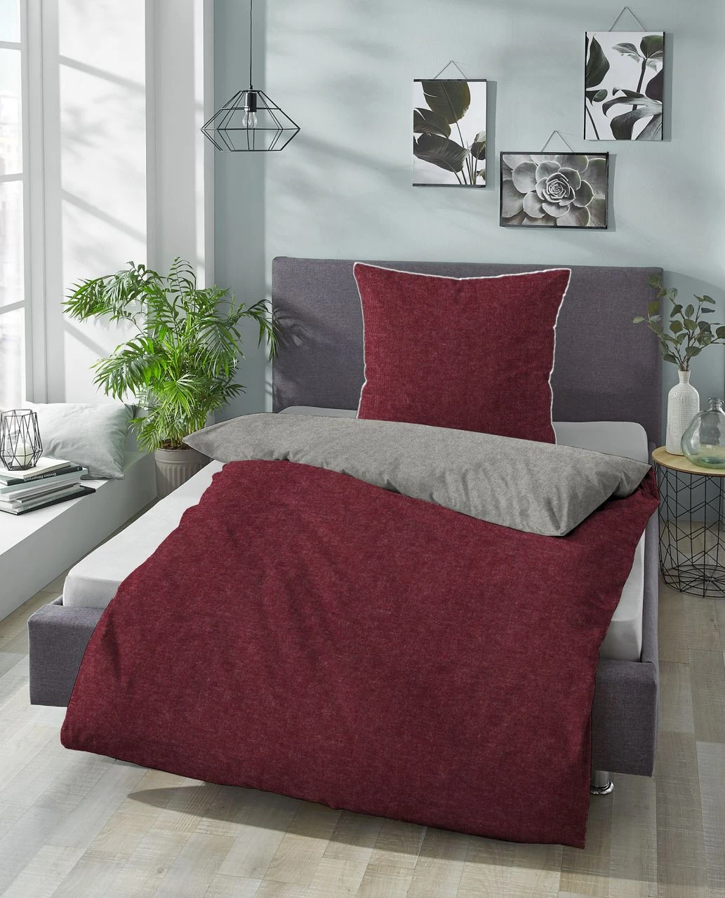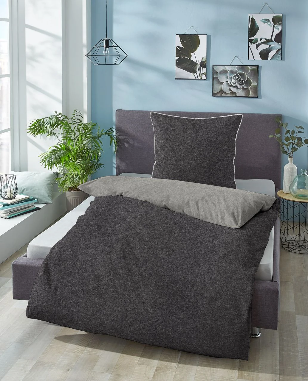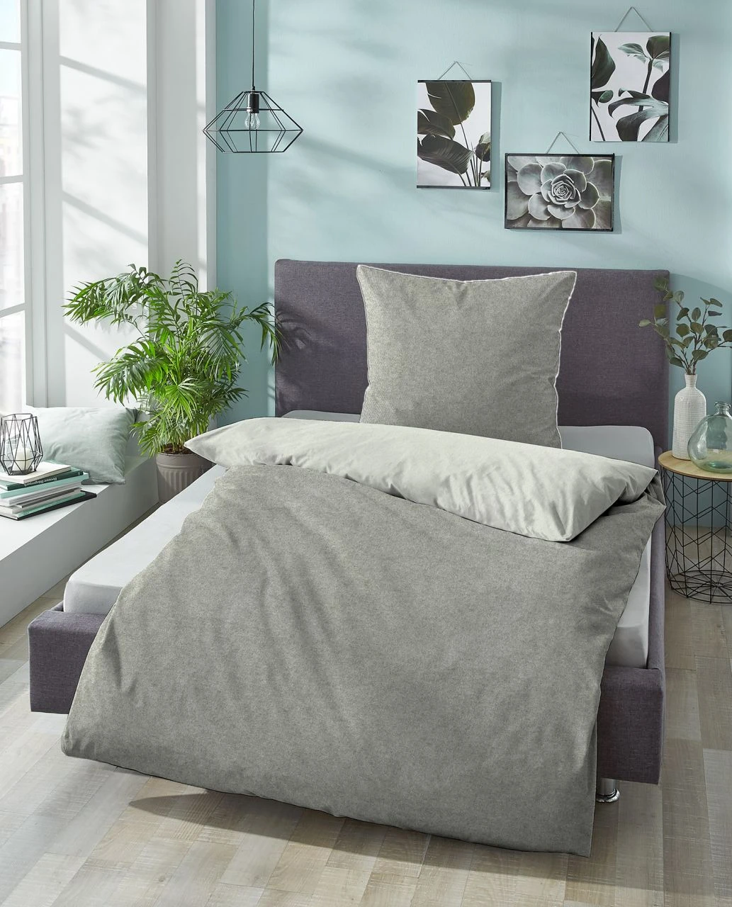 - Modern, schlicht und anpassungsfähig: Melange-Flanell-Wendebettwäsche in trendigen Unis