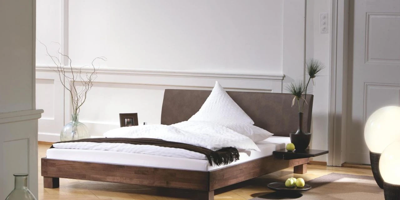 Der Rahmen Classic 16 überzeugt durch seine natürliche, warme Oberfläche und seine klare, schlichte Form. Jede der zahlreichen Holzausführungen wirkt durch ihre Farbe ganz unterschiedlich. Das gepolsterte Kopfteil Lecco mit Kunstleder-Bezug Casual in der Farbe Olive-Braun hat eine leicht geschungene Form und sorgt somit für viel Bequemlichkeit. Die Füße Ivio sind nur 10 cm hoch und erwecken das Gefühl von Bodenständigkeit und Ruhe. Die Kombination von Rahmen, Kopfteil und Füßen wirkt klassisch, schlicht und elegant.